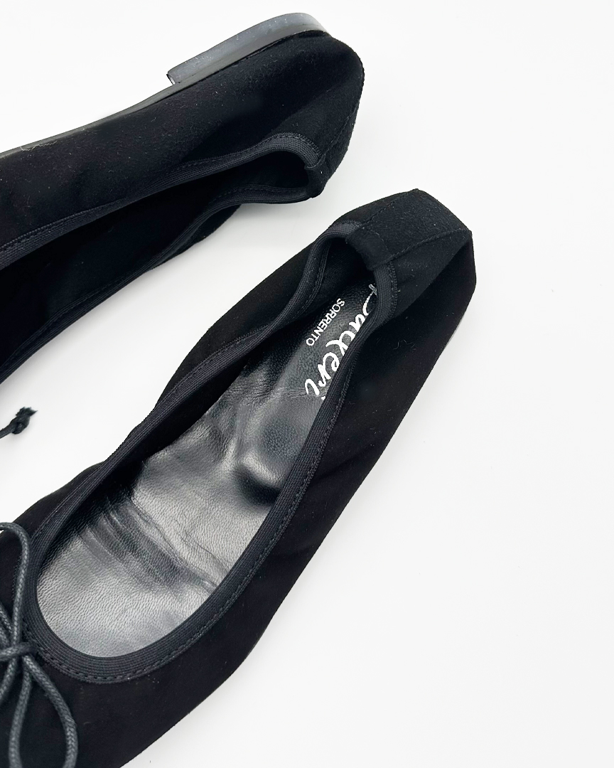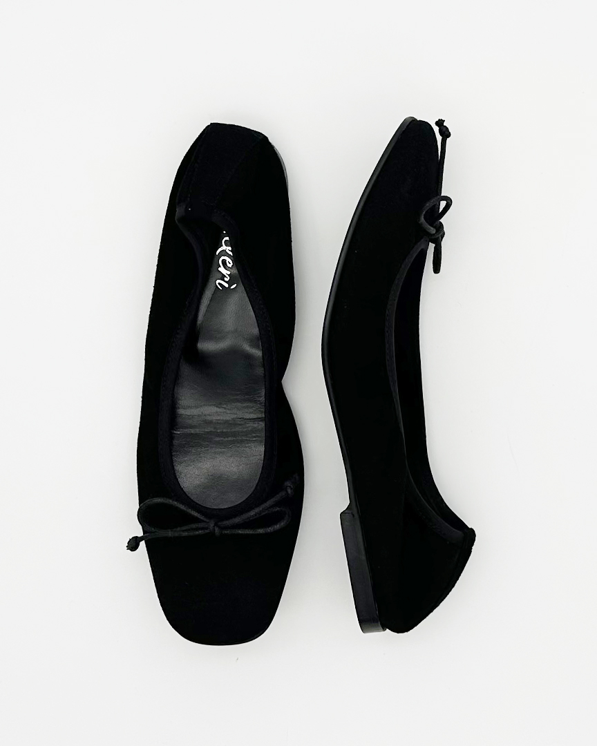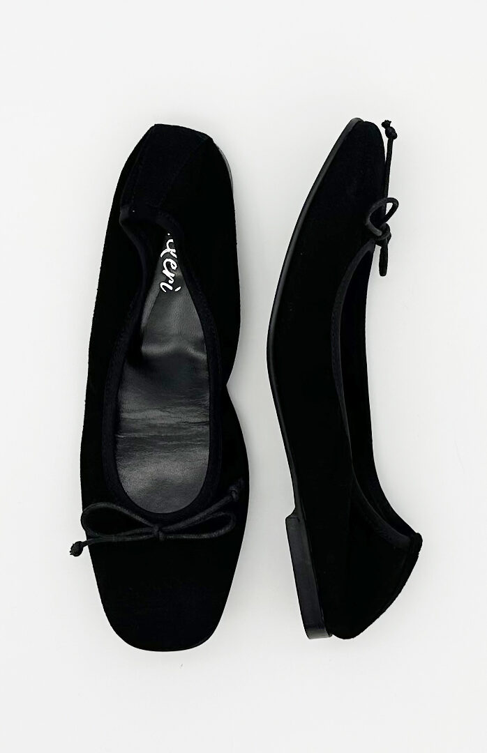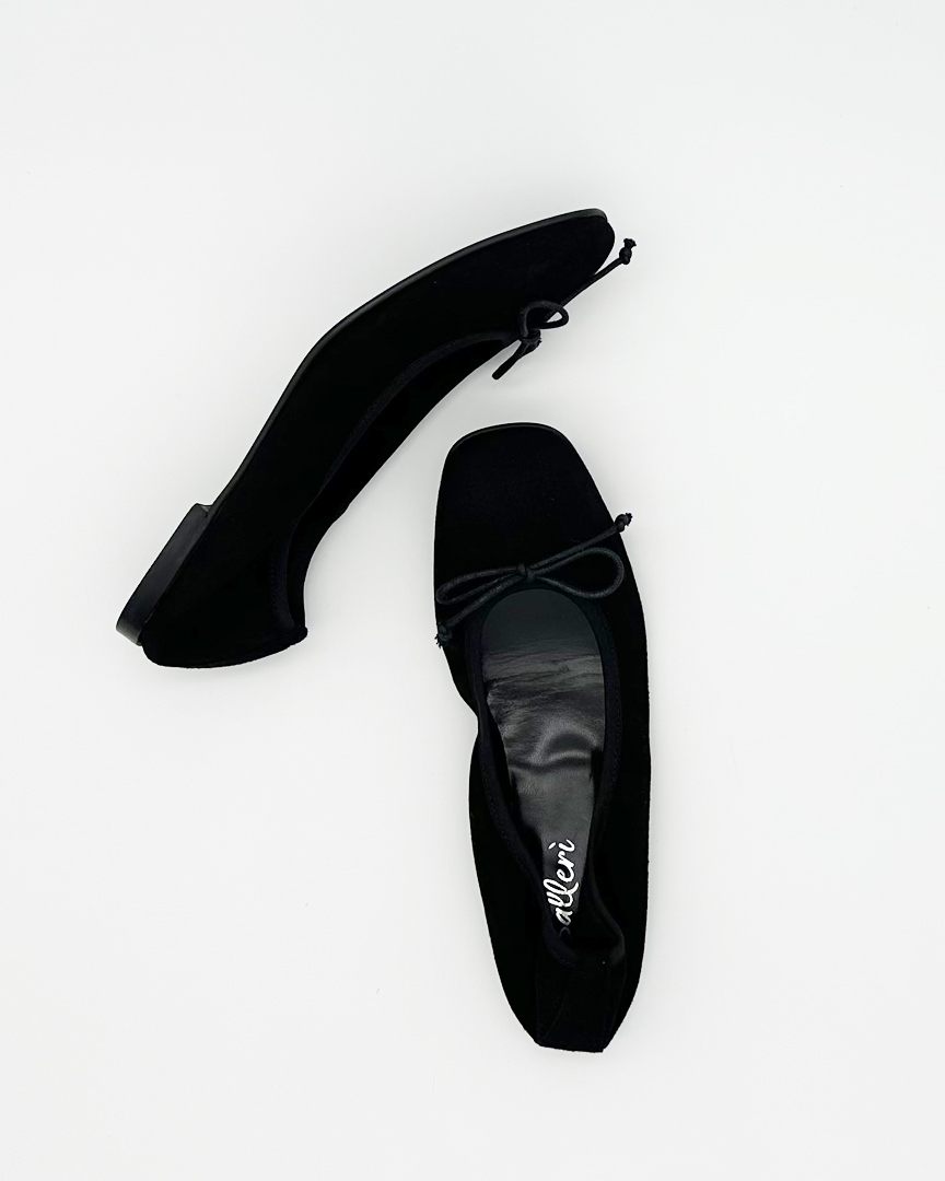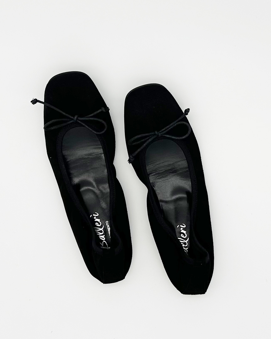 Black Suede Emma Square Toe Ballerina