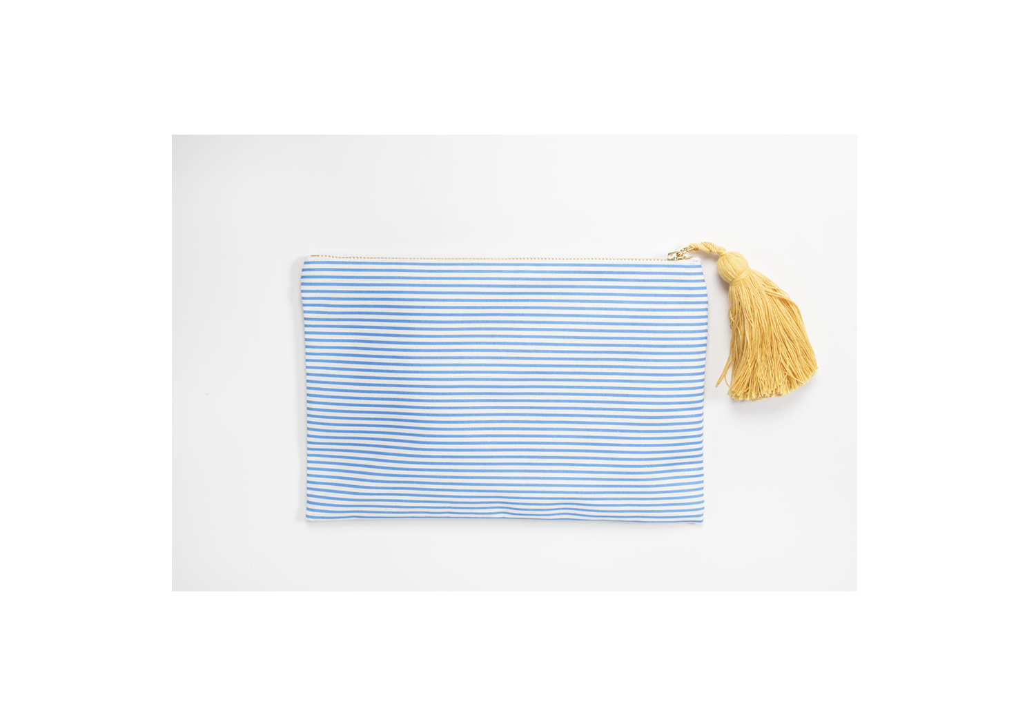 Clutch righe azzurre con limoni ricamati, nappina e chiusura zip