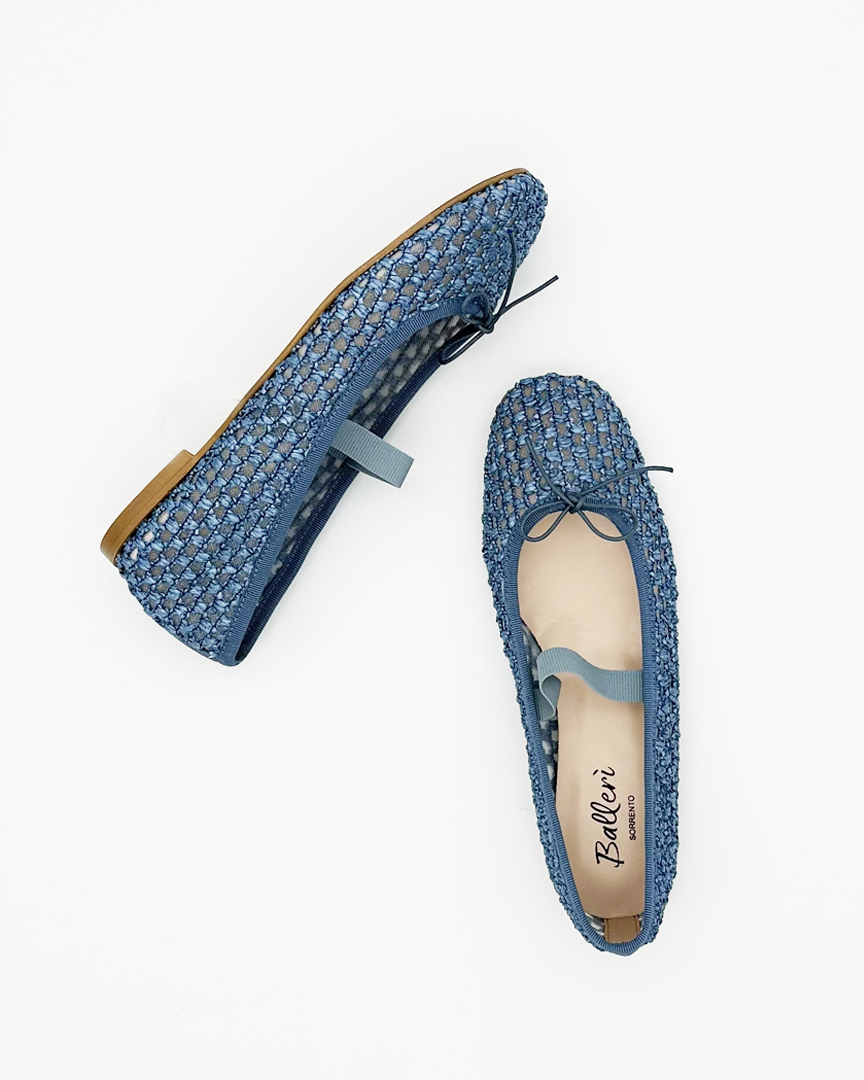 Ballerina a punta quadrata Emma Rafia Azzurro
