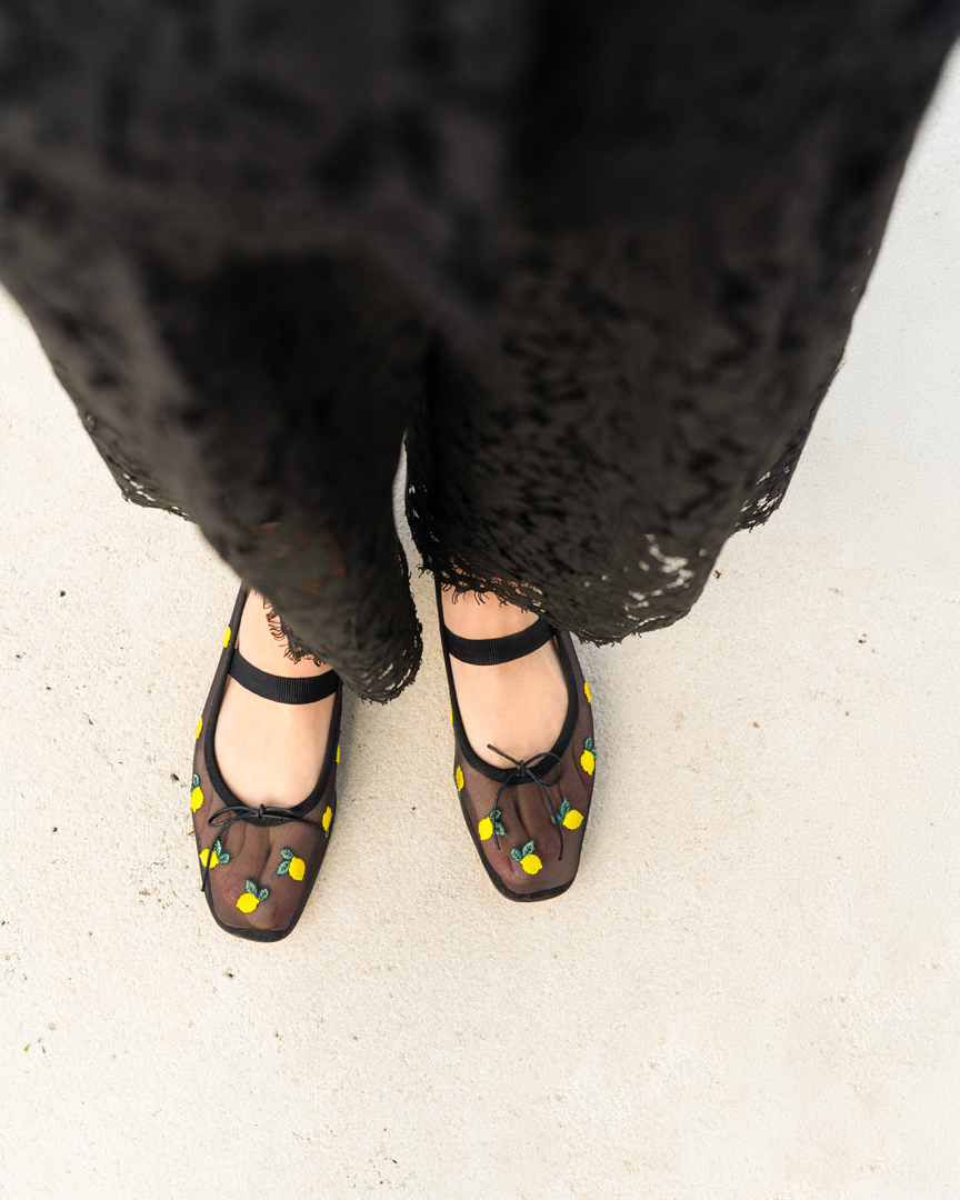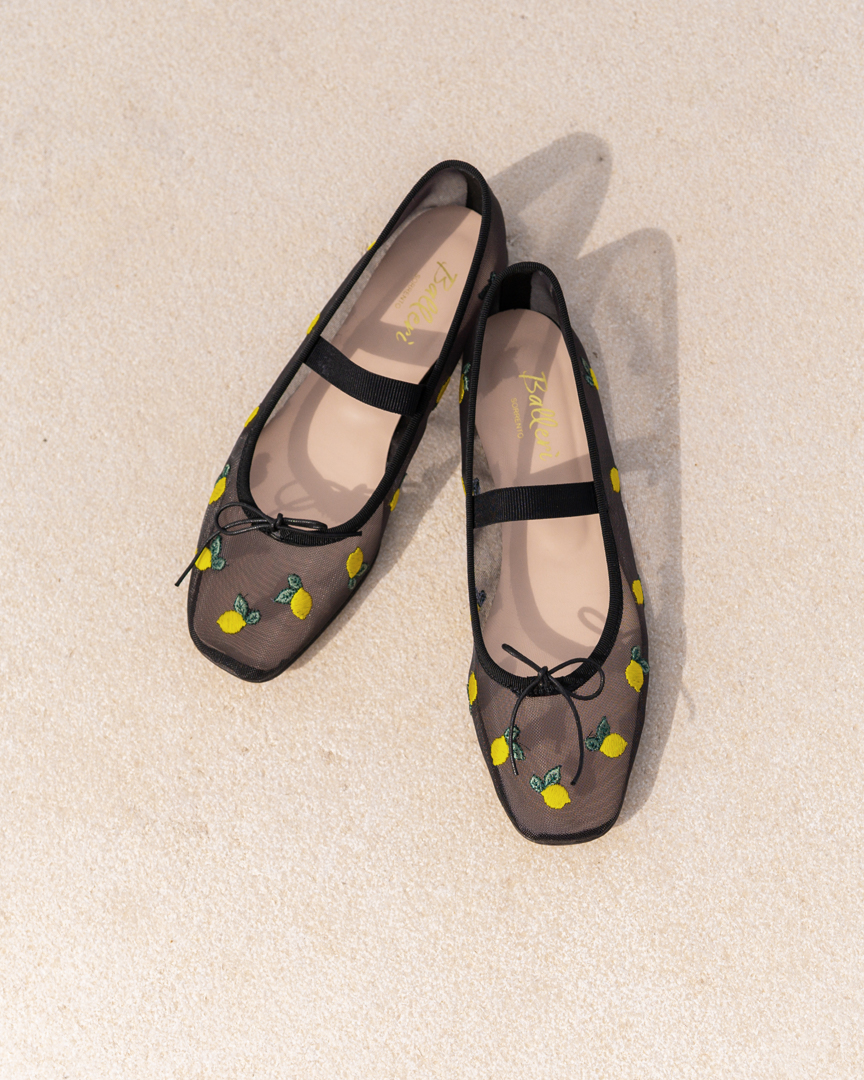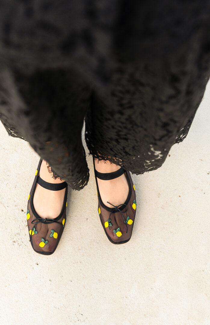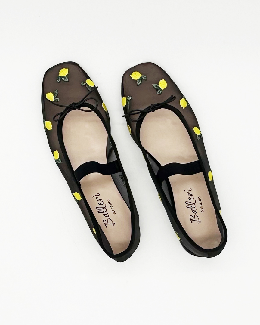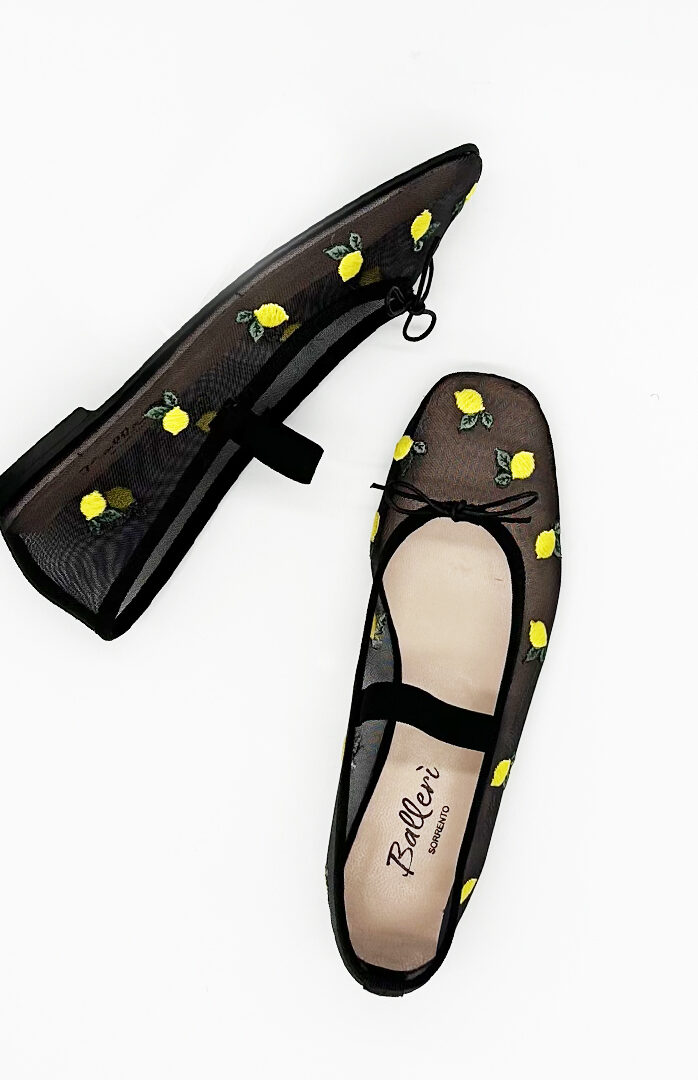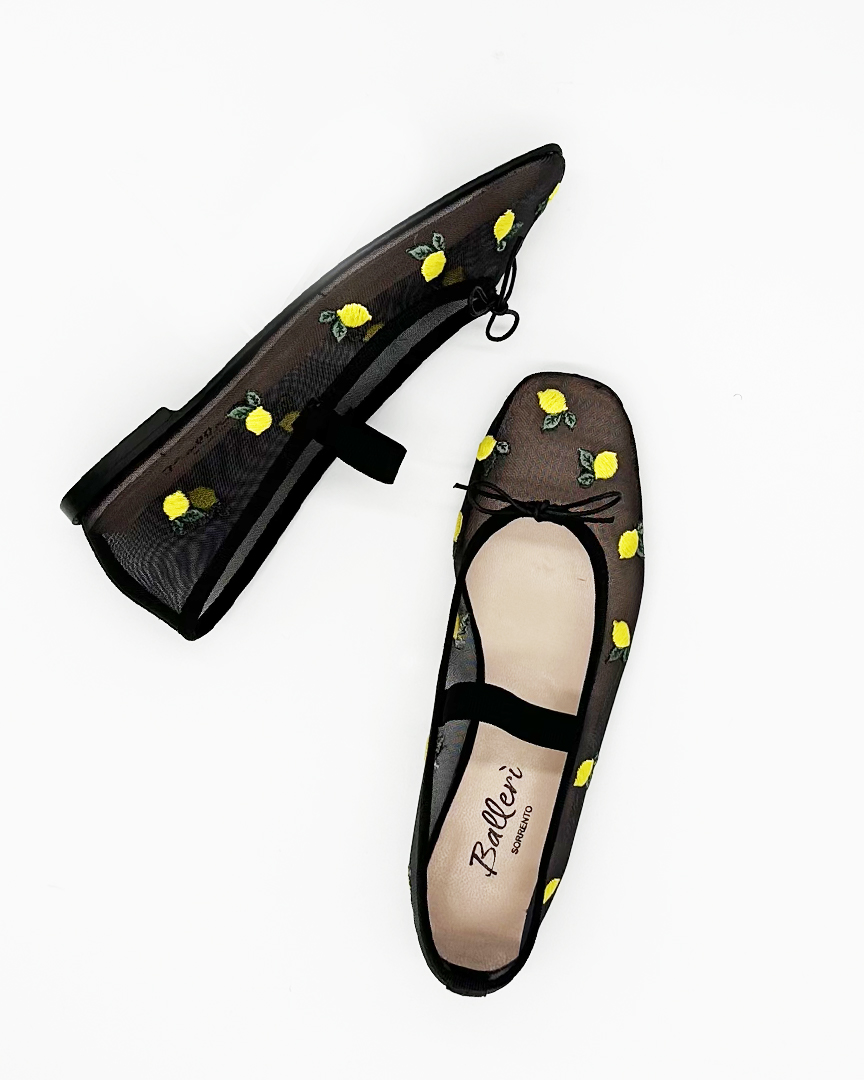 Lumia è la ballerina che cattura la luce e la poesia della Costiera. Realizzata in mesh traspirante con delicati ricami di limone, unisce leggerezza e unicità. Il cinturino elastico assicura una calzata comoda per tutto il giorno, mentre il fiocco decorativo aggiunge un tocco femminile e sofisticato. La punta squadrata dona modernità e slancia la silhouette. Perfetta da abbinare a sangallo bianco, pizzi leggeri o denim vissuto, per un’eleganza naturale dal sapore d’estate.