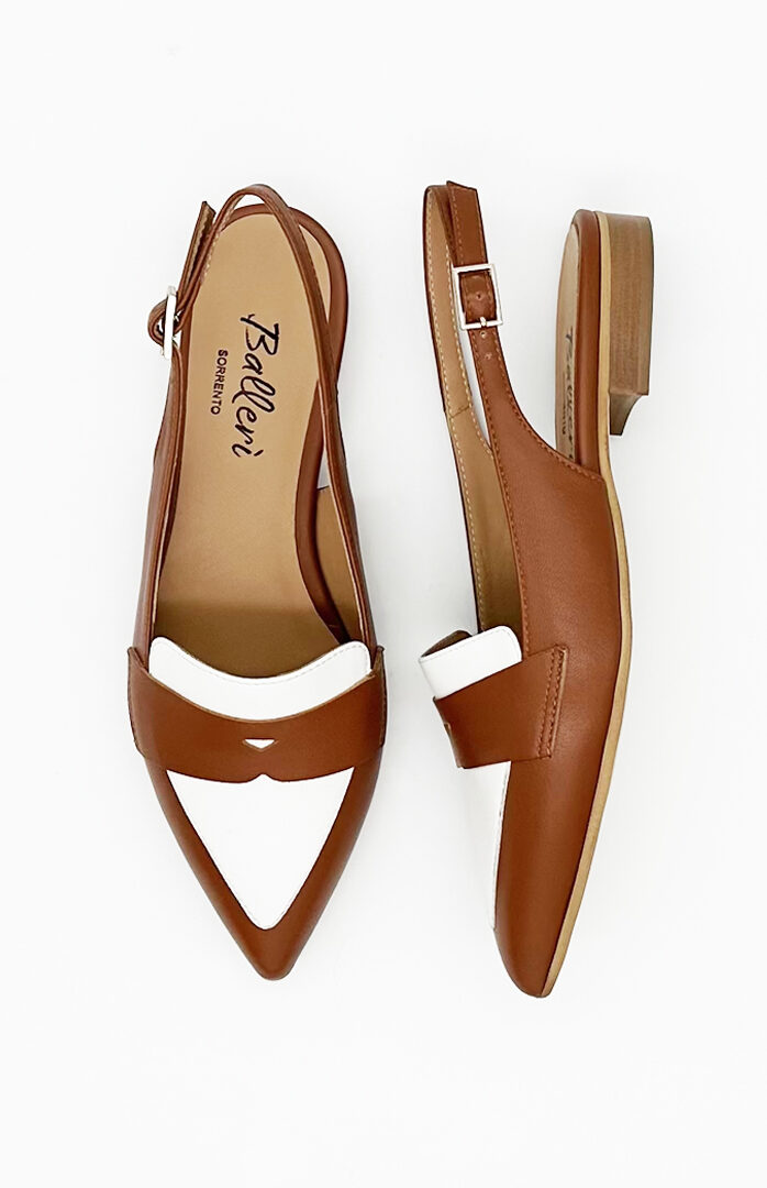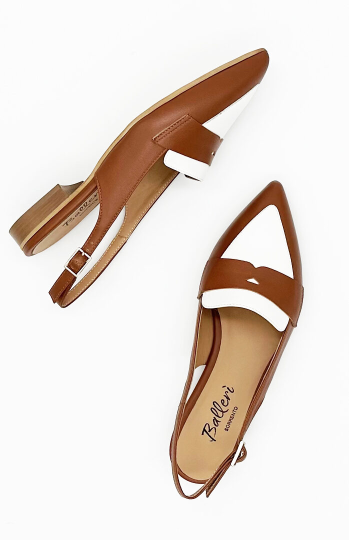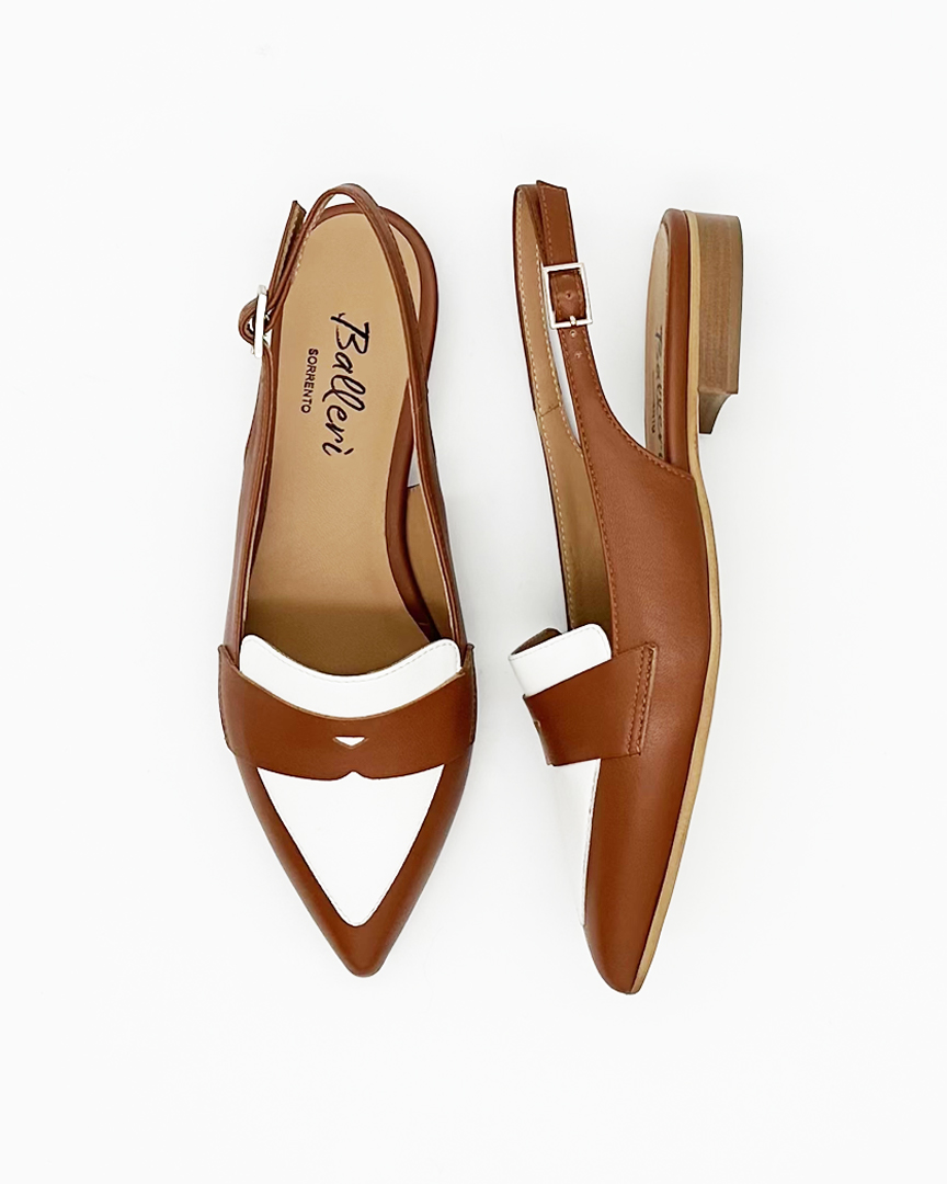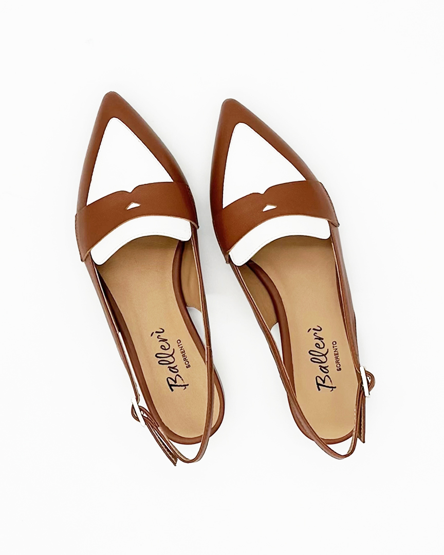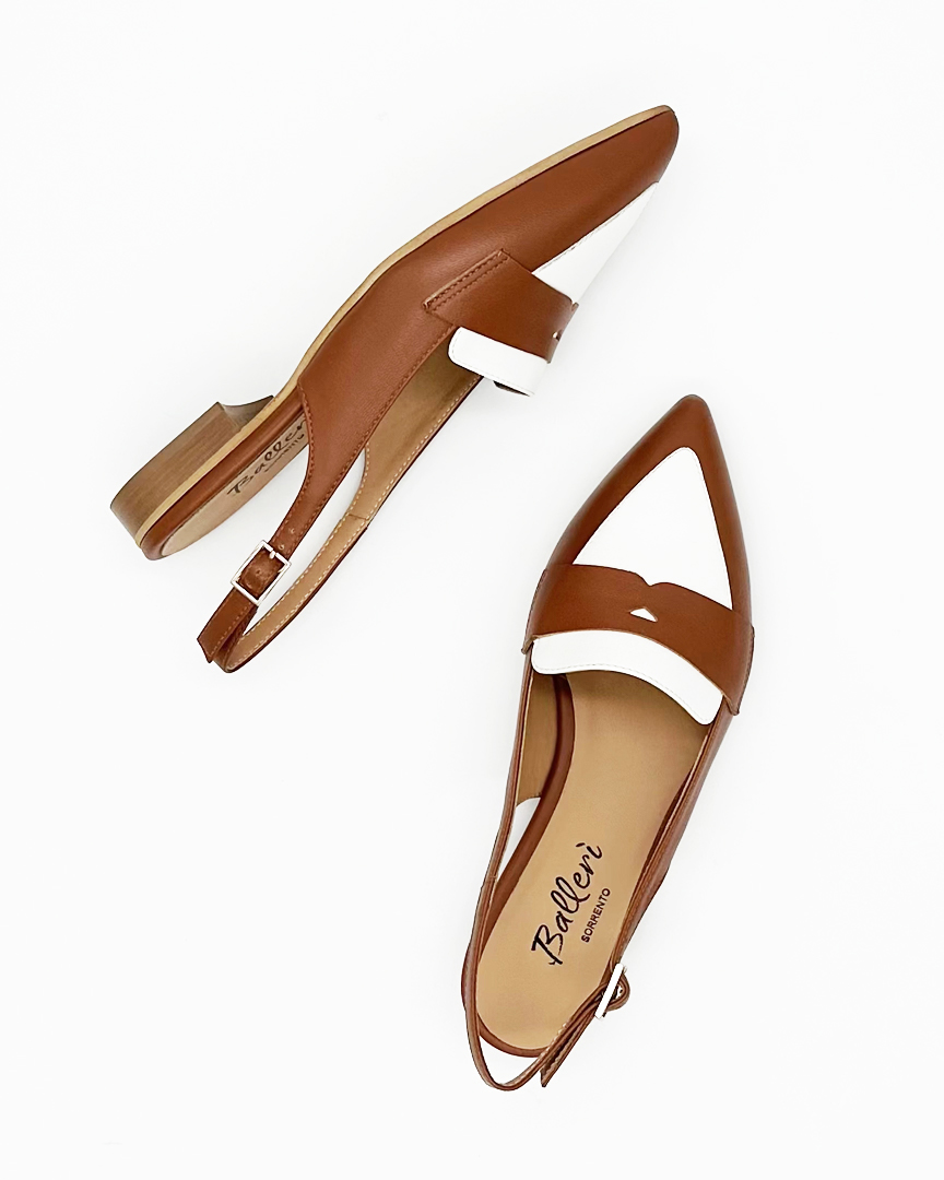 Mocassino Slingback a punta Milano Pelle Cuoio/Bianco