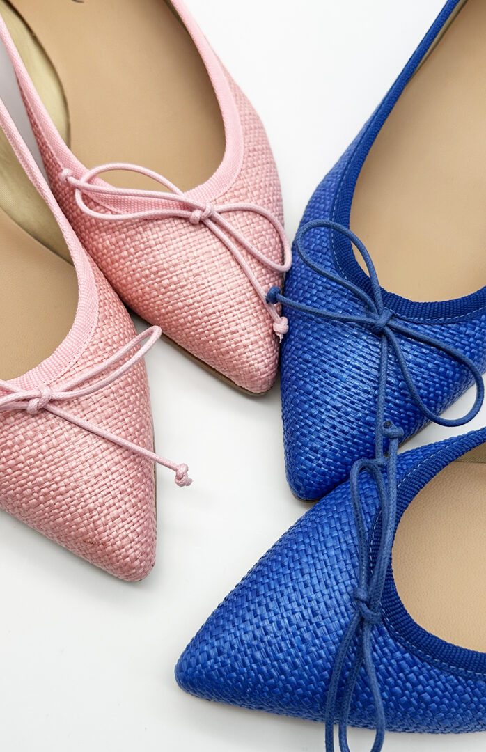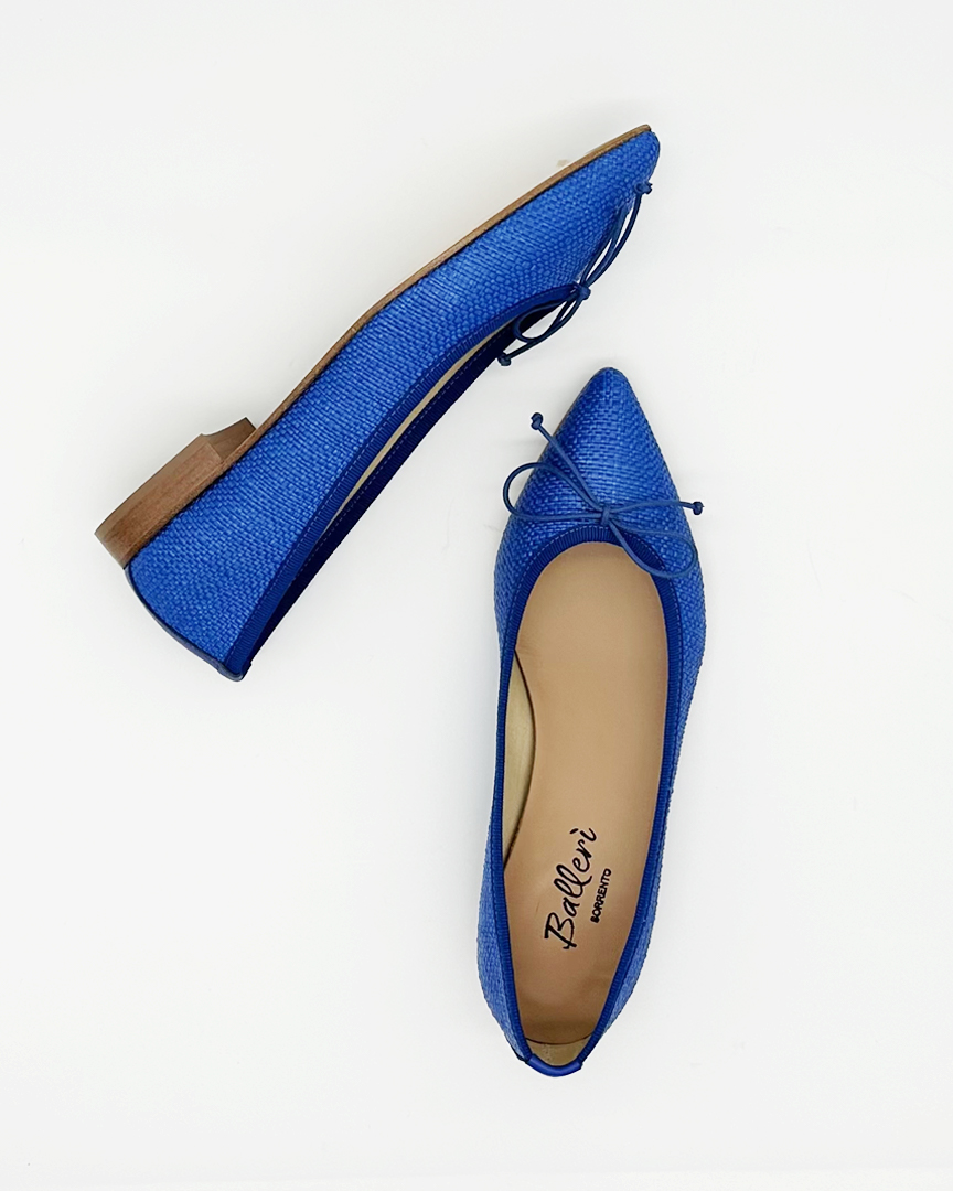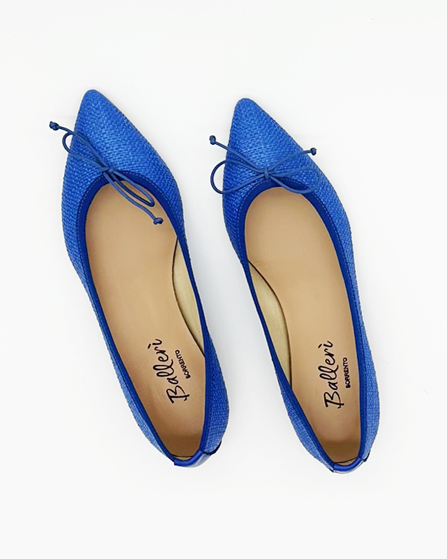 Our Eleonora ballerina is now offered in naturally soft raffia. Made from raffia fabric with tonal trims, this timeless and comfortable silhouette is perfectly suited for every occasions. Wear this easy-chic design to ground fluid dresses or capri pants.