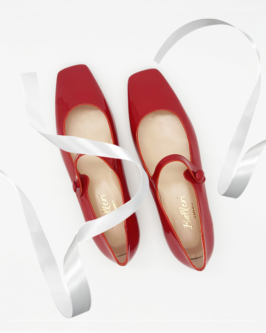 Red Patent Leather Mary Square Toe Ballerina