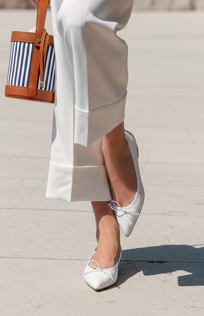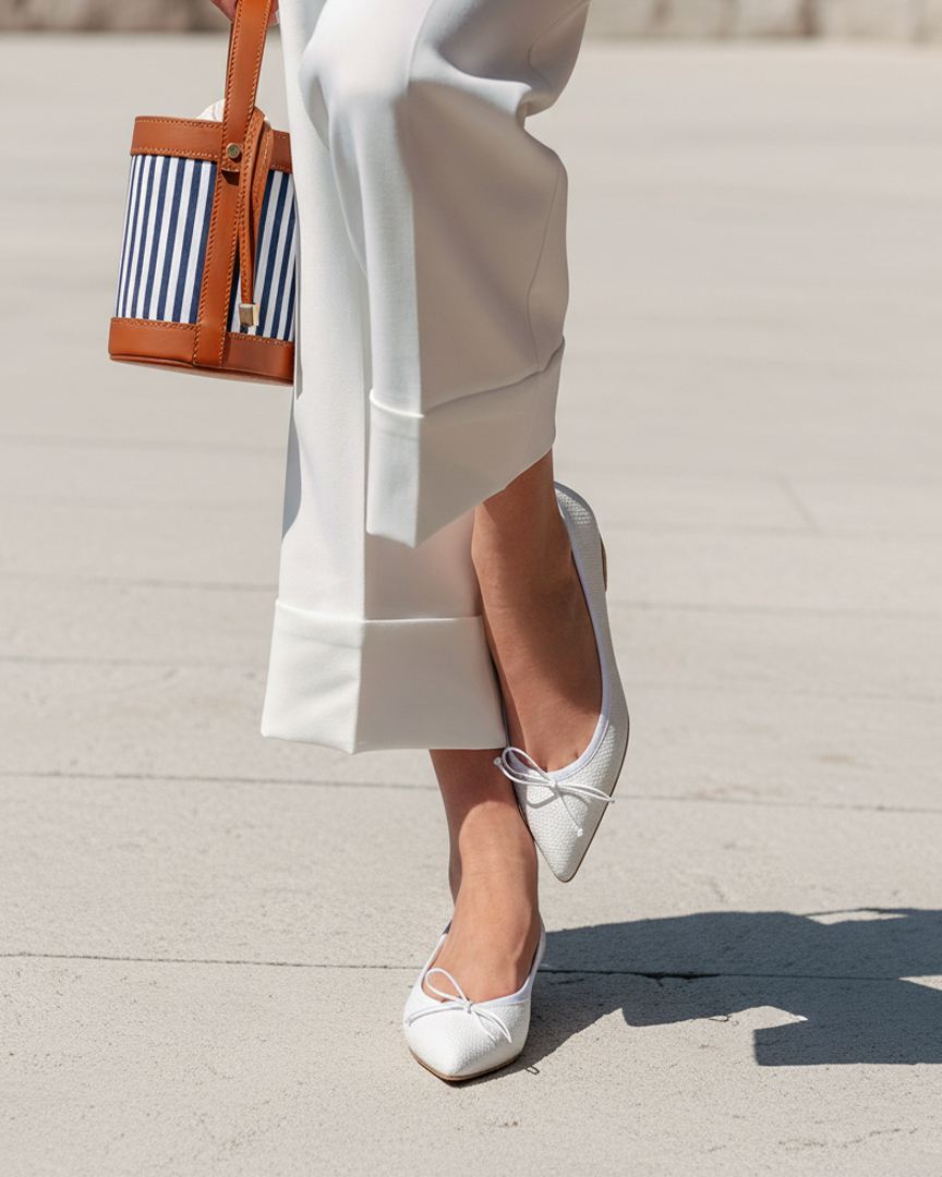 White Raffia Eleonora Pointed Ballerina – 38