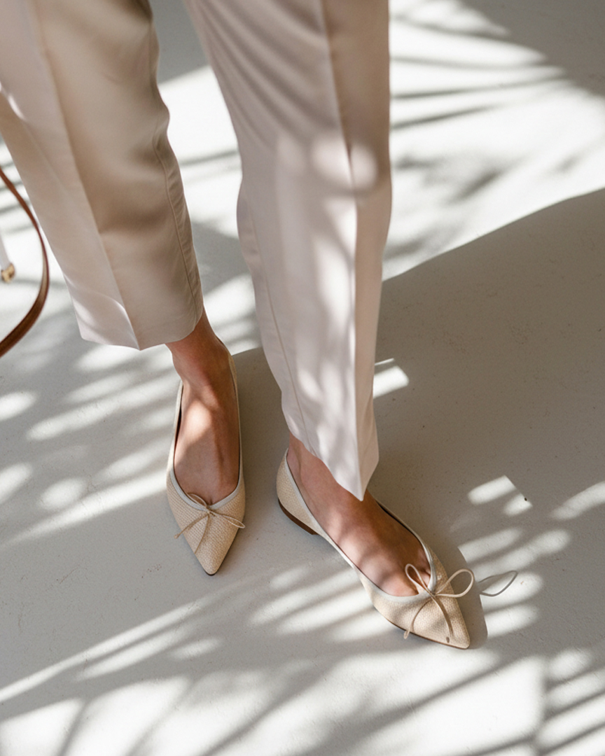 Quest’estate per una silhouette elegante e inconfondibile optate per le nuove ballerine Eleonora in rafia naturale. Lavorate in morbida rafia intrecciata con rifiniture in tinta, daranno una nota sofisticata a tutti vostri look.
