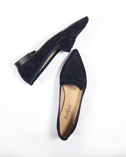 Nel mocassino a punta Nico le linee classiche ed essenziali delle scarpe più formali incontrano il comfort e la leggerezza delle ballerine. Morbida nappa e camoscio italiani disegnano silhouettes raffinate per un look minimalista senza tempo. La lavorazione a ballerina lo rende estremamente comodo, perfetto da indossare con i jeans o con un pantalone sartoriale.