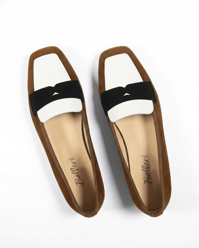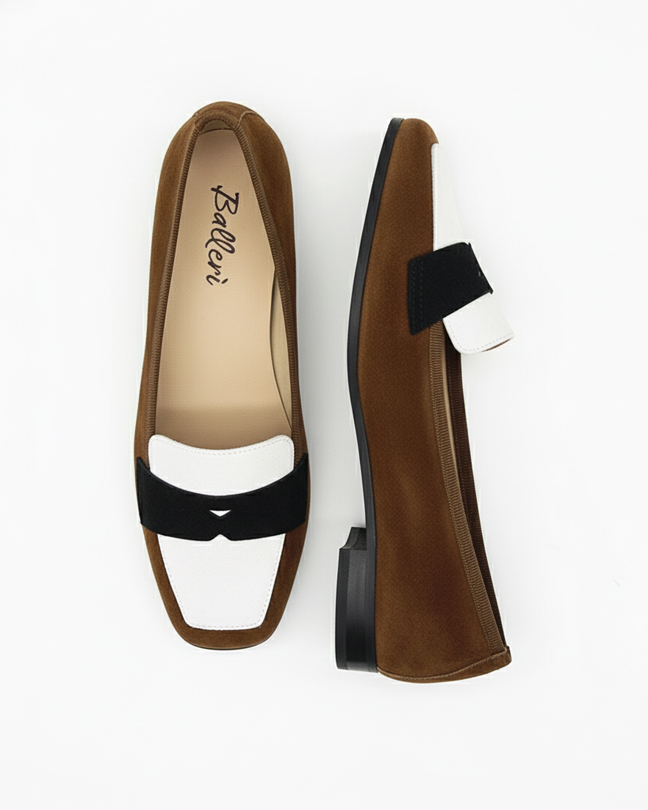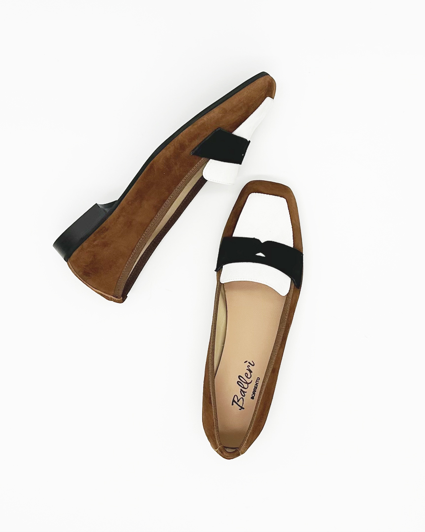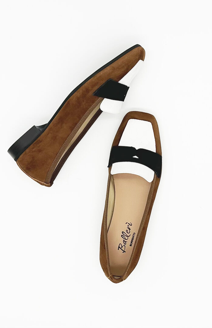 Mocassino a punta quadrata Eres Camoscio Cuoio/Bianco/Nero