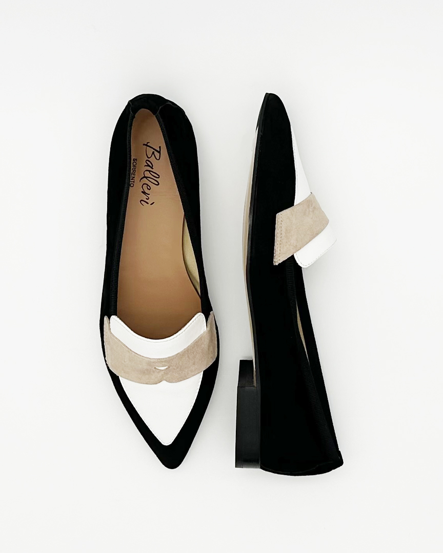 Mocassino a punta Roma Camoscio Nero/Bianco/Beige