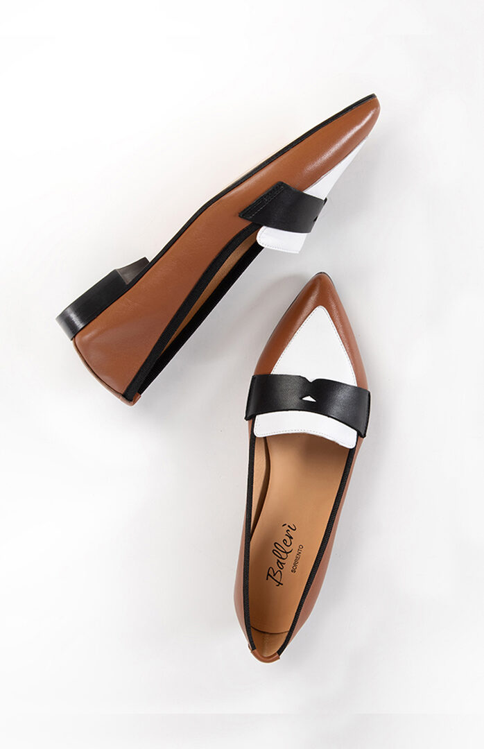 Mocassino a punta Roma Pelle Cuoio/Bianco/Nero