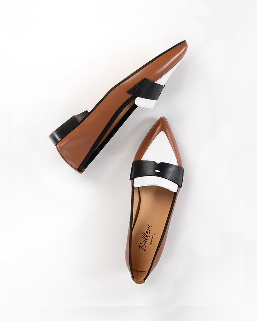Il mocassino a punta Roma ha linee classiche ed essenziali, la leggerezza e la comodità di una ballerina. Il gioco di contrasto dei tre colori di nappa lo rendono unico per design ed eleganza. Perfetti da indossare con i jeans o con un tailleur sartoriale, per un look minimalista senza tempo.