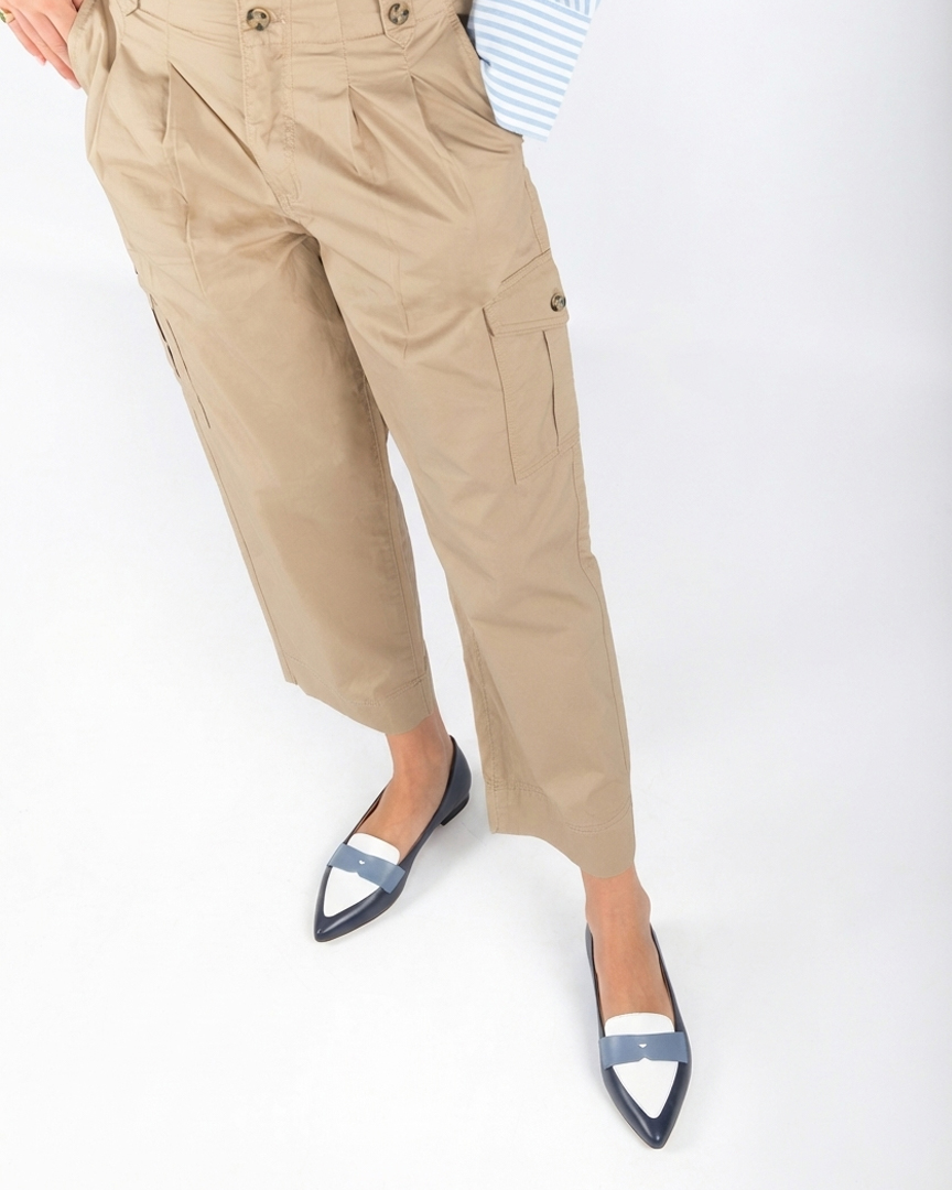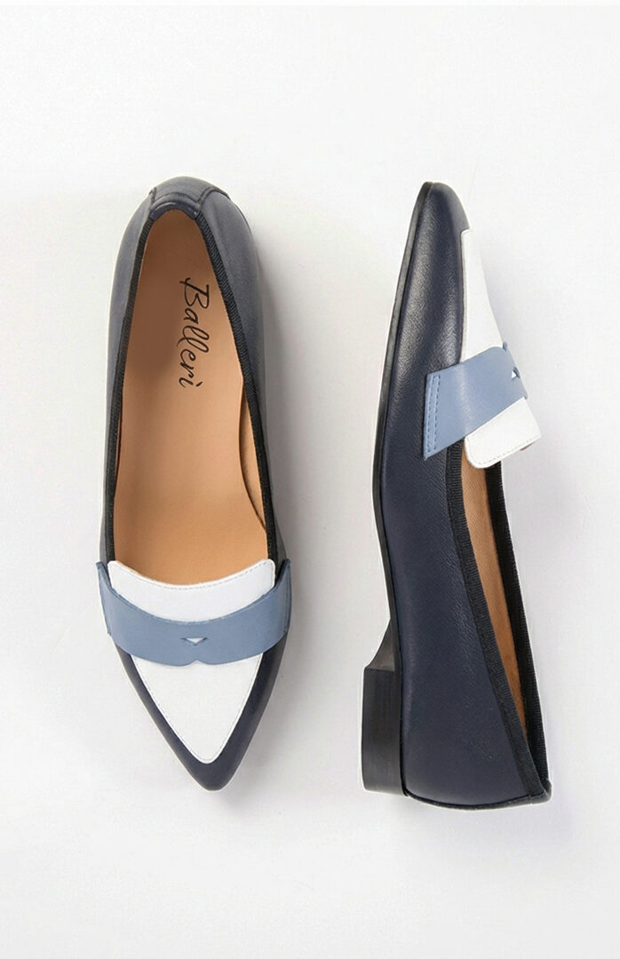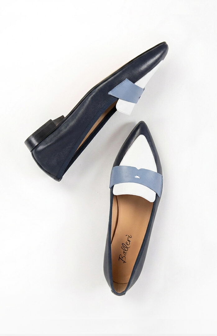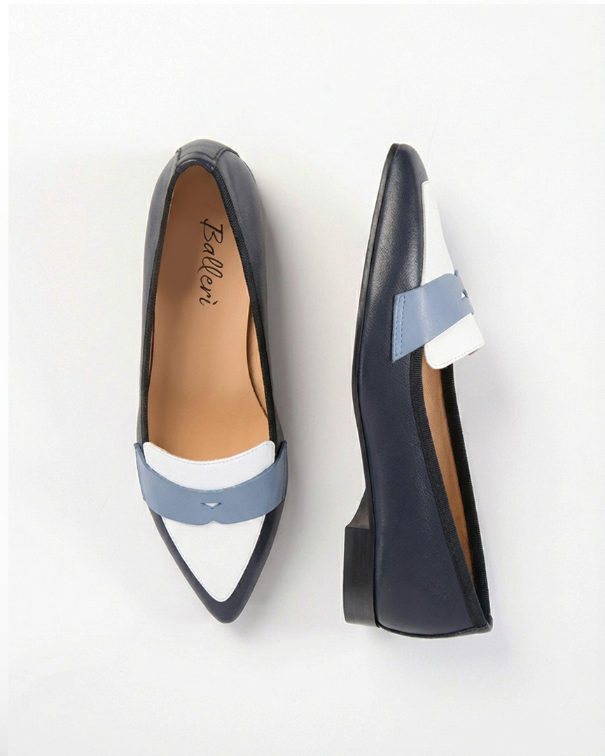 Il mocassino a punta Roma ha linee classiche ed essenziali, la leggerezza e la comodità di una ballerina. Il gioco di contrasto dei tre colori di pelle lo rendono unico per design ed eleganza. Perfetti da indossare con i jeans o con un tailleur sartoriale, per un look minimalista senza tempo.